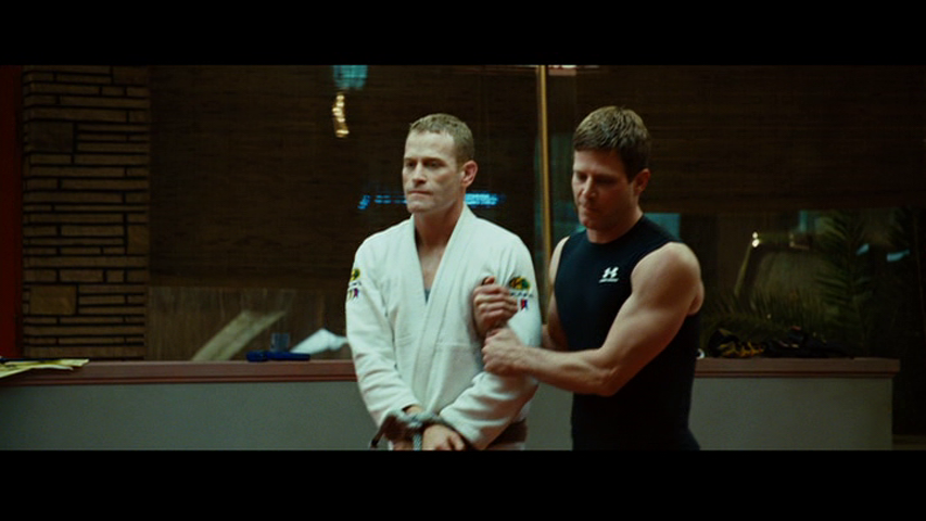 The man being “taken to court” is Officer Joe Collins (Max Martini) of the LAPD and his hands are bound because this is what it means to draw the black marble: you are given a handicap based on which number the wheel lands on, in this case six, which corresponds to the fighter’s hands. “Good!” Mike says as Officer Joe turns the situation to his advantage with a takedown.