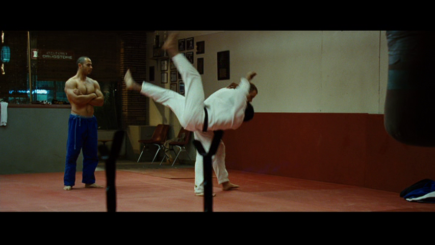He’s the owner of a dojo, and what we’ve been watching is his signature training method. “Who imposes the terms of the battle will impose the terms of the peace,” he explains, drawing out the final word. “You think he has a handicap?” he asks his other students, referring to the one who drew the black marble. “No! The other guy has a handicap if he cannot control himself. You control yourself, you control him.” Then: “take him to court.” And thus begins the film’s first fight.