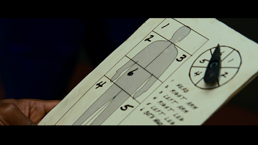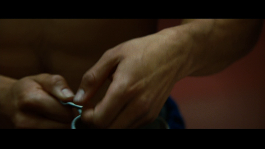 There’s a close-up of a fighter’s face, then a rack focus as he holds up his marble. It’s the black one: