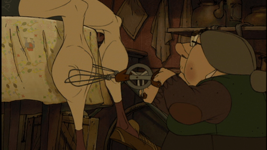 The Triplets of Belleville features all sorts of delightful grotesqueries, including a frog-based tasting menu that ranks among the most memorable meals in movie history. My favorite, though, is what happens to Champion’s body after he receives this present. It isn’t just a thoughtful gesture, you see, but a raison d’être. When we see him again he’s training for the Tour de France: