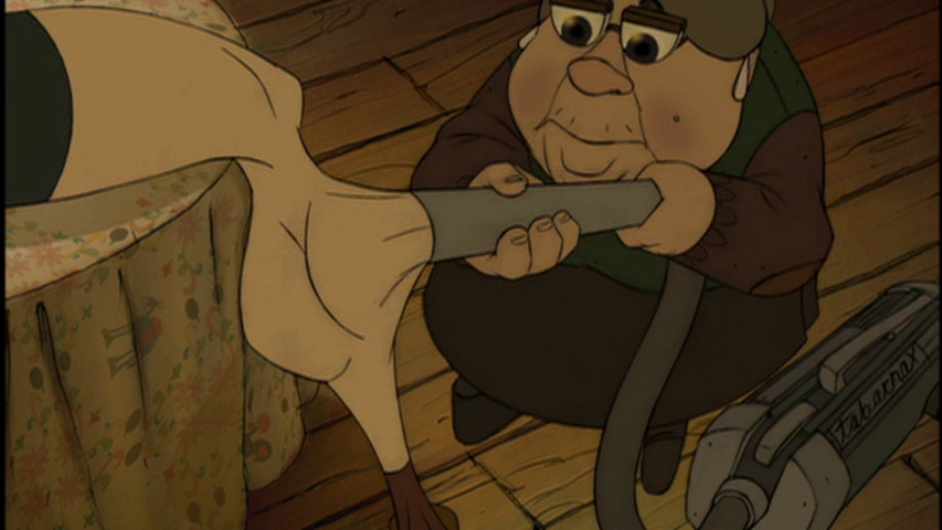 The Triplets of Belleville features all sorts of delightful grotesqueries, including a frog-based tasting menu that ranks among the most memorable meals in movie history. My favorite, though, is what happens to Champion’s body after he receives this present. It isn’t just a thoughtful gesture, you see, but a raison d’être. When we see him again he’s training for the Tour de France: