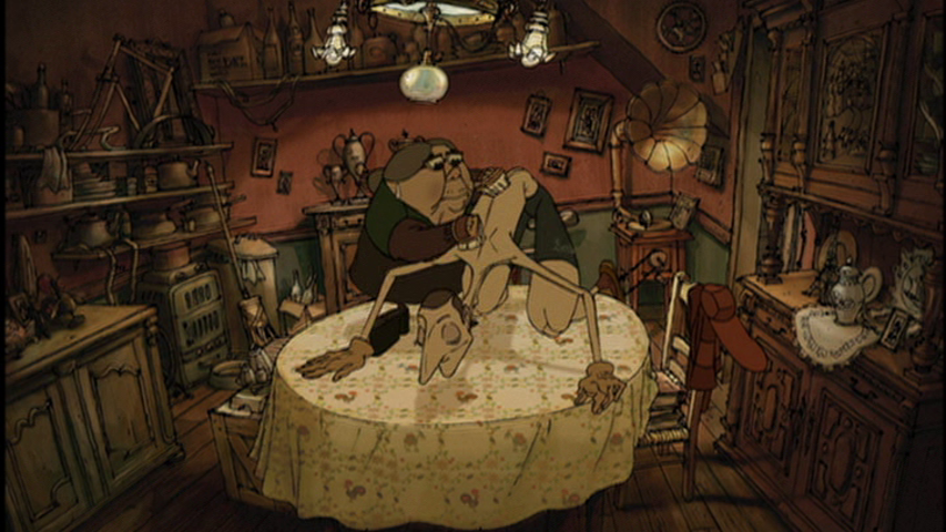 But that comes later, after the boy, whose name is Champion, has been kidnapped by French mobsters, The grandmother, whose name is Madame Souza, will pursue him to Belleville, where she’ll meet up with the triplets and join their ensemble, which now features improvised instruments made from household objects: