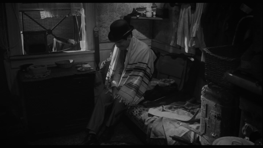 Hester Street isn’t perfect: most notably, I don’t think Keats and Silver succeed in showing us what’s going on inside Jake’s mind, which makes their version of the character much less interesting than Cahan’s. Whereas the novella describes him as being “in a flurry of joyous anticipation” on his way to meet Gitl and Jossele at Ellis Island, but then goes on to say that “his heart had sunk at the sight of his wife’s uncouth and un-American appearance,” the Jake of the film just seems put out by how much they’re crimping his style from the word go. It’s the difference between a man who wants to do the right thing but is so intoxicated by his ideal of America that he can’t and one who is just kind of a jerk. It also renders some scenes unintelligible, which Micklin Silver herself seems acknowledge in one case on the commentary track on my DVD copy of the film. She notes that this scene showing Jake awkwardly praying for his deceased father was meant to convey the idea that he’d never even gotten around to unpacking his tallit: