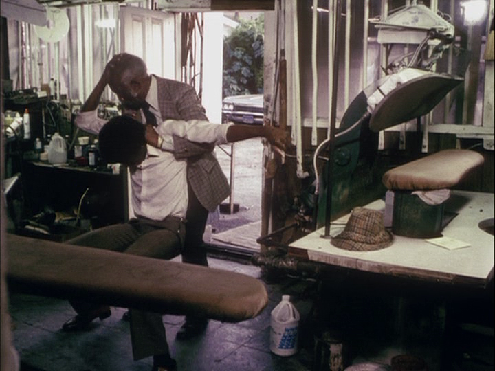 Later, Pierce is unable to find Soldier a job, but it’s clear that any of the prospective employers he talks to would hire him in a heartbeat. His mother may not be able to look past the fact that he isn’t a lawyer like his brother, but everyone else in Watts seems to see him as a pillar of the community. This is, by the way, a neighborhood in transition: it’s becoming a much more dangerous place. Everyone who lives there keeps a gun handy, including Pierce’s mother: