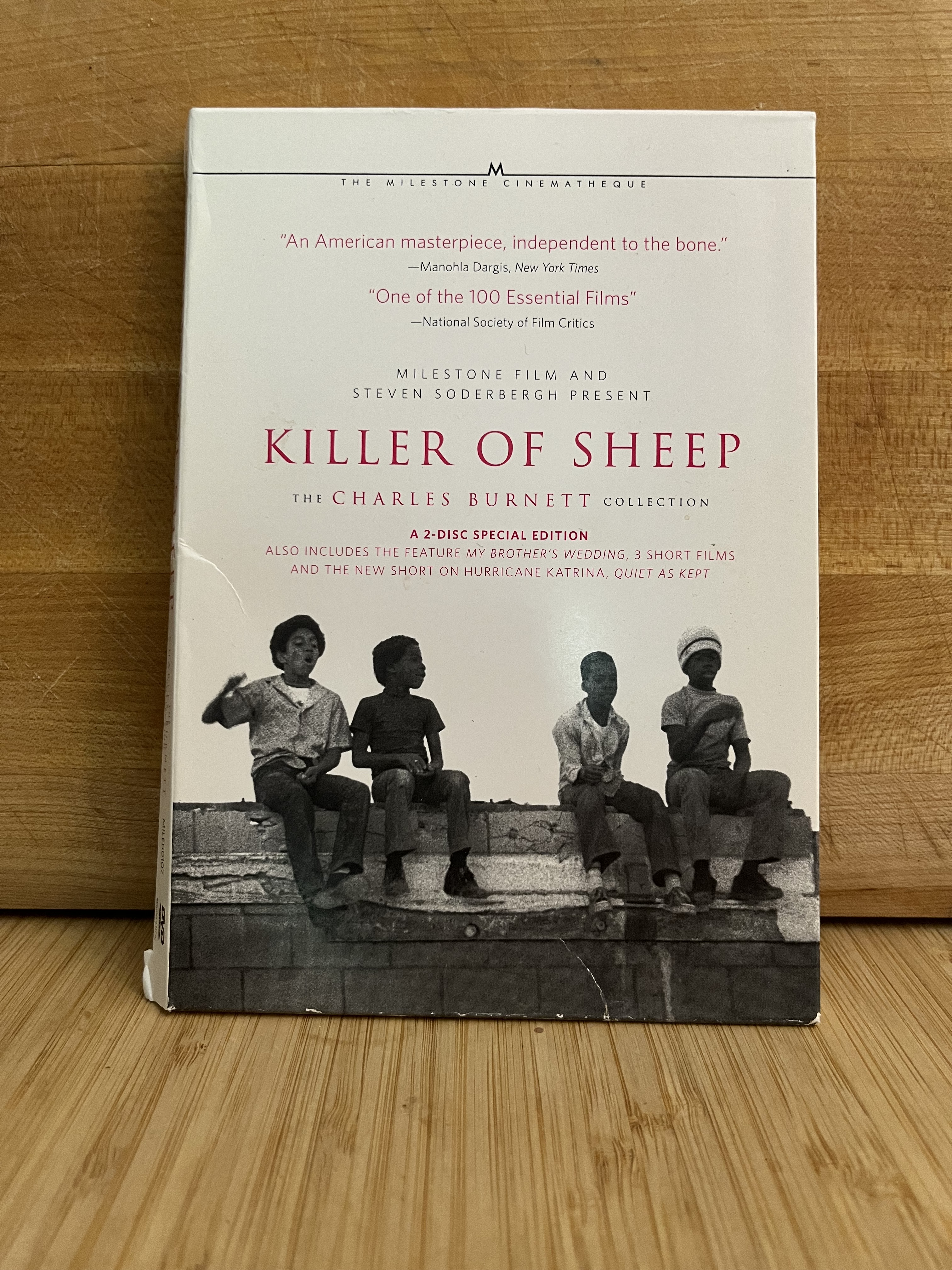 My loving fiancée Marion became my loving wife on August 9, 2014. We really wanted to make something for our wedding guests, and given our interests a cocktail was an obvious choice, so we infused Woodford Reserve bourbon with local Ontario peaches, prepared some homemade vanilla bitters, taught our younger brothers the correct ratio of these ingredients to sparkling white wine, and asked them to make sure they were ready in time for the toast. When one of these brothers (mine) announced that he was getting married this month, I knew exactly what my corresponding Drink & a Movie pairing would be. To start with the second half of the equation, here’s a picture of my Milestone Film Killer of Sheep: The Charles Burnett Collection DVD release which includes My Brother’s Wedding: