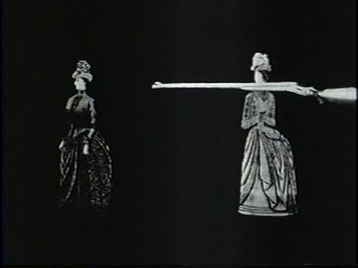 Like many of the film’s elements, both started life as engravings from a late-nineteenth-century illustrated magazine. Per Sitney, the man is identifiable as a magus by “his continual manipulations in the alchemical context of No. 12, coupled with his almost absolute resistance to change when everything else, including the heroine, is under constant metamorphosis.” As she sits in a “diabolical” dentist’s chair, the magus injects her with a magical potion:
