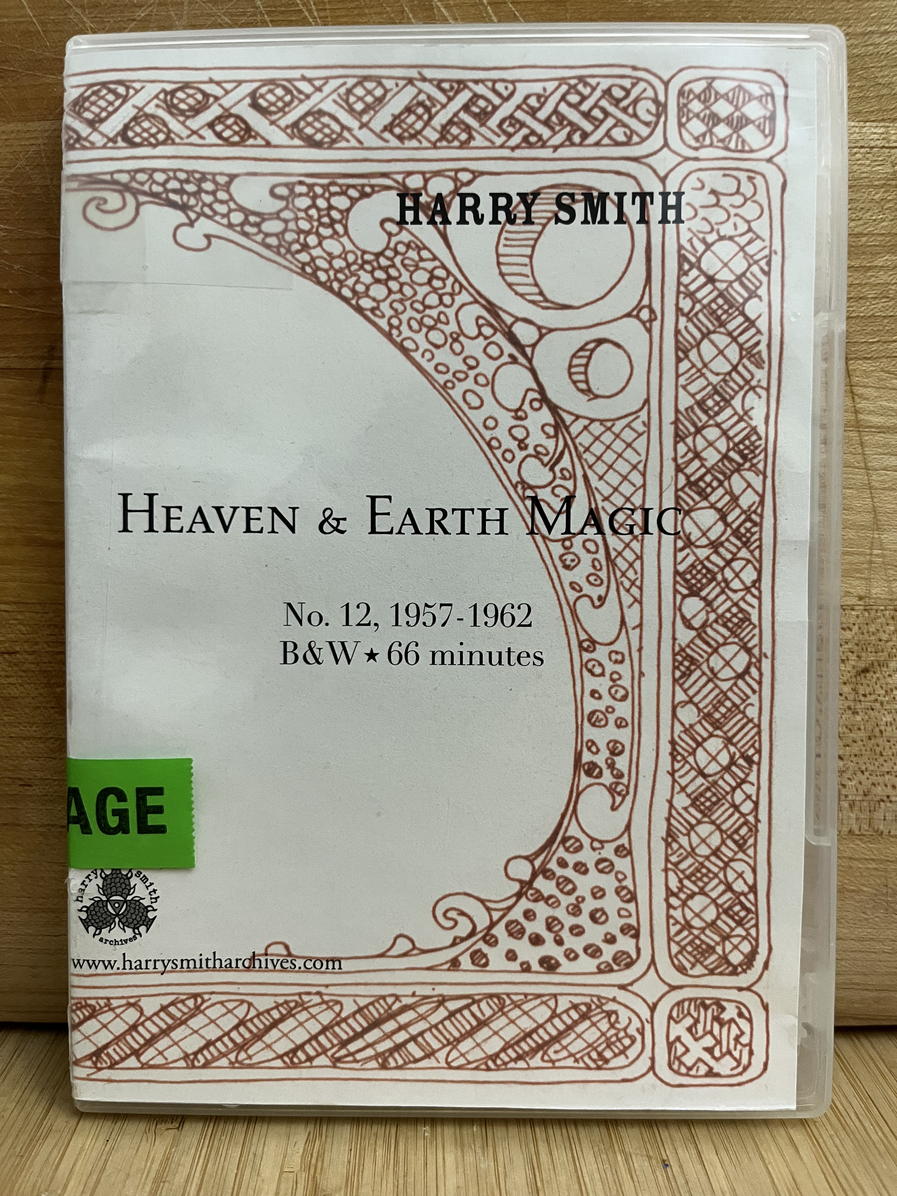 Next, of course, we have a movie. Here’s a picture of the Harry Smith Archives DVD release of the Heaven and Earth Magic that I borrowed via interlibrary loan: