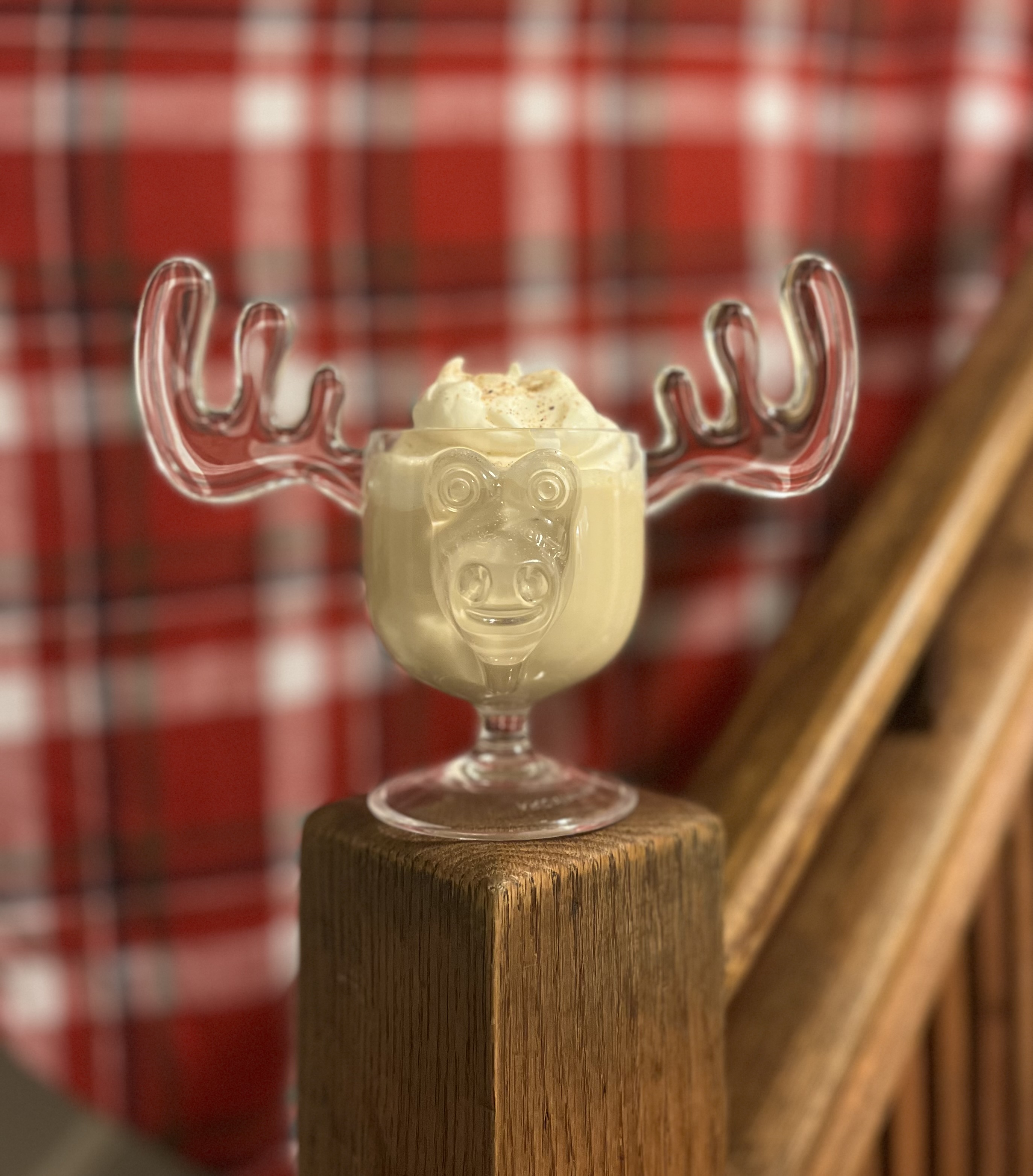 Whisk egg yolks and sugar together in a large bowl until well-blended and creamy using a stand mixer or by hand, then add remaining ingredients and stir or whisk to combine. Transfer mixture to a one-gallon glass jar or multiple smaller jars and place in the refrigerator for 30 days. Serve in a moose-shaped glass topped with a dollop of toasted sugar Tennessee whiskey meringue and garnished with freshly-ground nutmeg.