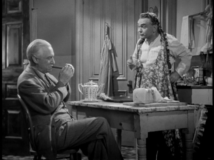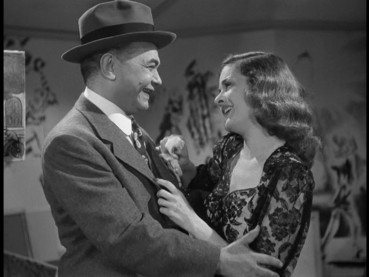 Cross reads the engraving and stammers out a brief speech of gratitude. Everyone belts the refrain of “For He’s a Jolly Good Fellow,” then J.J. treats Chris and his co-worker Charlie (Samuel S. Hinds) to fancy (“it’s made special for me, a dollar apiece”) cigar before excusing himself. As the others rush to the window to ogle the “dame” he can’t keep waiting: