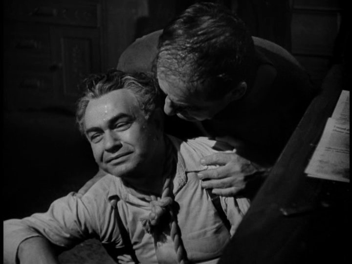 In the process of doing so, Gunning describes Johnny as being “[a]s nasty, slimy, sadistic, cowardly, lazy, ignorant and venial a character as one could find in a Hollywood film,” which is accurate. Dan Duryea is so effective in this role that I wonder if it was detrimental to his career–I recently saw Thunder Bay for the first time, and although his Johnny Gambi turns out to be a perfectly decent person, I kept waiting for him to do something horrible, which was incredibly distracting! The distinctively out-of-style hat he dons in Scarlet Street is practically a character in its own right, as evinced by these two different close-ups: