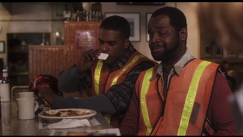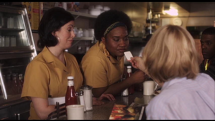 As she explains to the waitresses (Carolyn Farina, who portrayed Audrey Roget in Stillman’s films Metropolitan and The Last Days of Disco, and Shinnerrie Jackson) and some fellow customers (Gerron Atkinson and Jonnie Brown, who per IMDb is a fellow Pitt alum) at a diner she breakfasts at afterward who express concern that she’s one of “those depressed students down from the university” intent on killing herself, she’s not as crazy as she was yesterday “due to the salutary effect of scent on the human psyche”: