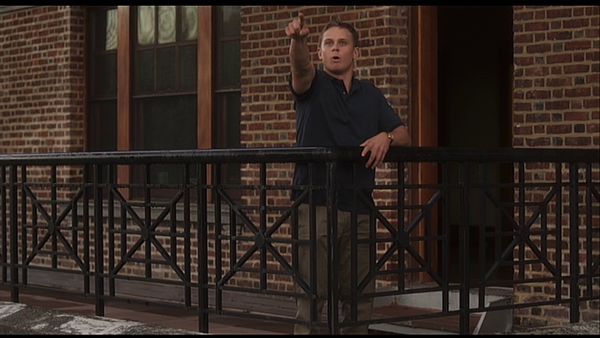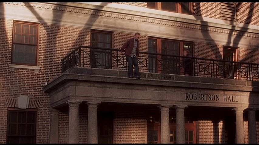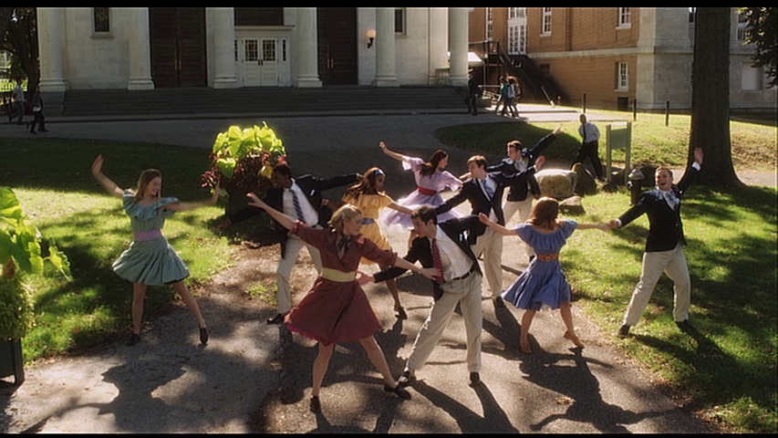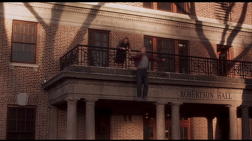 The key to understanding what’s going on here is the same thing I love most about the film: it celebrates college as a safe space for reinvention. Compare, for instance, the diner conversation referenced above about people who actually kill themselves by jumping in front of cars on the highway with the “suicidal Ed School” students who keep throwing themselves off the top of their two-story building, which I assume was inspired by Leonard’s Leap from A Damsel in Distress: