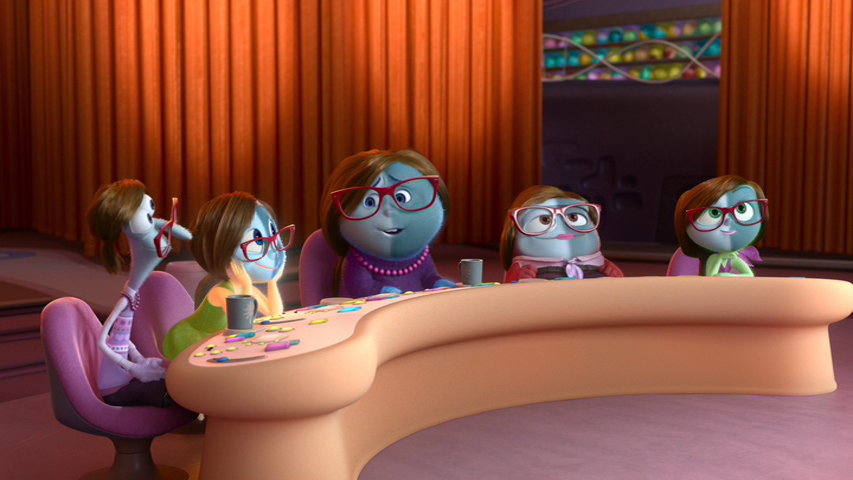 Are all the personified emotions that scurry around inside the head of the movie’s young heroine supposed to be an allegory for her developing consciousness? Or is Riley actually being controlled by whatever adorable cartoon has seized the console at the moment, like she’s a mecha in the shape of a 13-year-old girl?