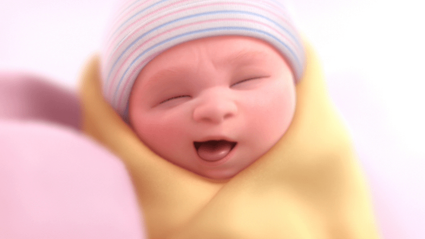 At first the console has but one button, and when Joy pushes it, baby Riley laughs: