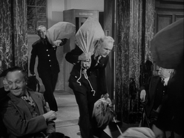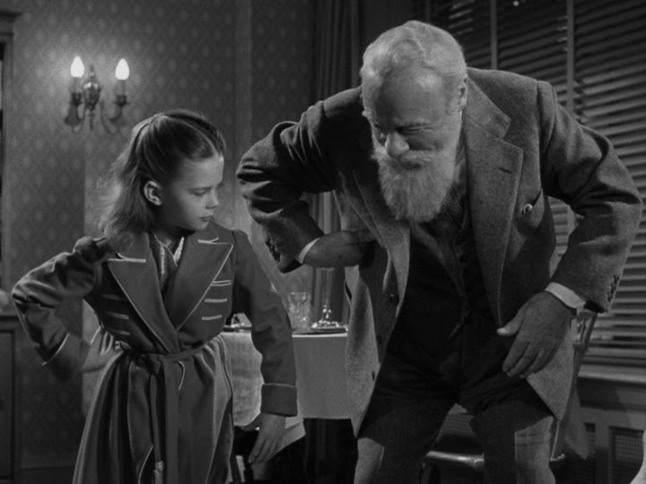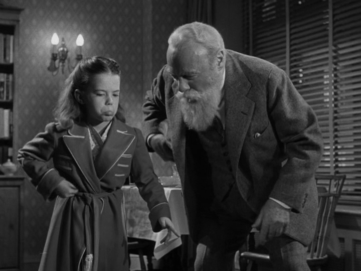 While Mr. Sawyer is the champion of the latter. Doris and Mr. Shellhammer aren’t sure at first, but when Mr. Macy himself concludes that Kris’s insistence on sending parents to other stores to get the toy their children want if that’s where the best price can be found is good for his bottom line (“we’ll be known as the helpful store, the friendly store, the store with a heart, the store that places public service ahead of profits–and, consequently, we’ll make more profits than ever before!”), they quickly come around. The real drama, though, accompanies Fred’s attempts to convince Judge Henry X. Harper (Gene Lockhart), who has to balance his apparently sincere desire to faithfully discharge his public duty with the need to appease the electorate who gets to decide if he will continue in his role. Score is kept by the number of approving or concerned looks his political advisor (William Frawley) shoots him every time the hearing takes an unexpected turn: