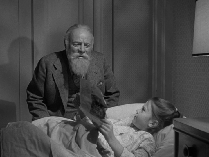 It works, but by that time lawyer Fred Gailey (John Payne) has already leaped at the excuse to see single mother Doris, his neighbor, more often by offering up his extra bed. Kris is a hit with Macy’s customers and although Fred annoys Doris by taking her daughter Susan (Natalie Wood) to see him while he’s working (“We should be realistic and completely truthful with our children and not have them growing up believing in a lot of legends and myths,” she tells him), everything seems to be going well otherwise–until she finds out that Kris openly identifies himself as the genuine article: