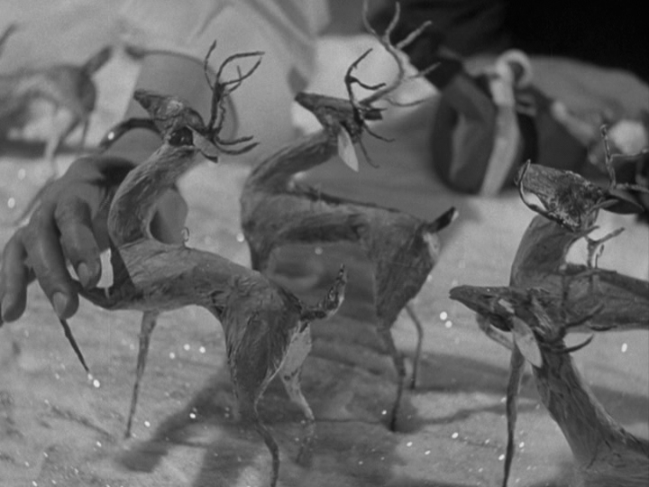 As she runs to see whether or not there’s a swing (“there is one!”), Fred takes Doris in his arms and kisses her. “The sign outside says it’s for sale,” he says, “we can’t let her down.” Then: “it even makes sense to believe in me now. I must be a pretty good lawyer. I take a little old man and legally prove that he’s Santa Claus.” But suddenly he stops mid-sentence, distracted by something offscreen: