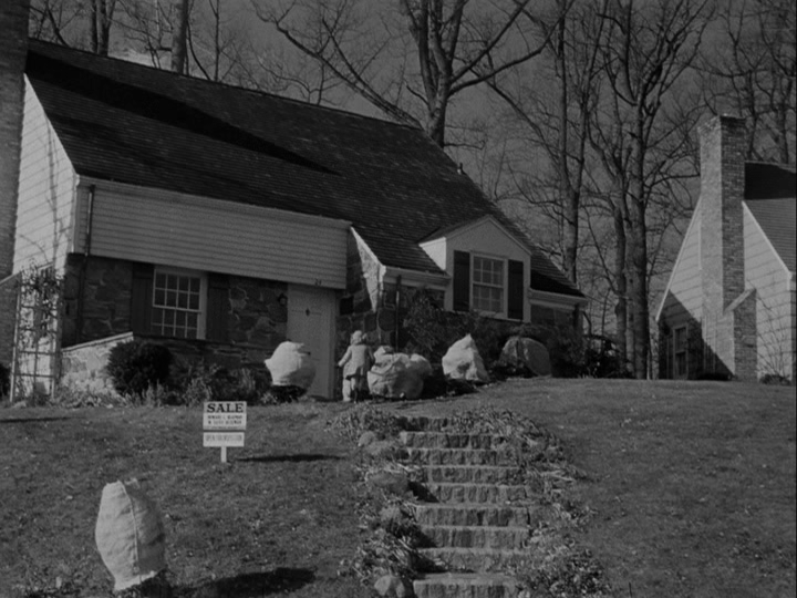 The camera pans left, and we see that she’s running toward a house that’s a dead ringer for the picture she showed Kris, only this one has a “For Sale” sign in front of it: