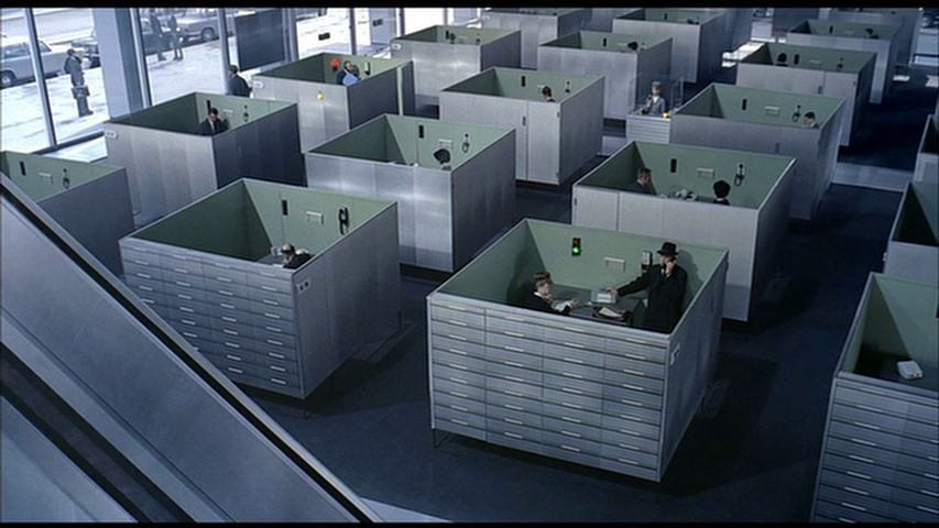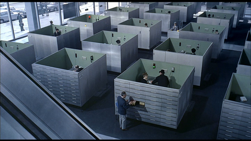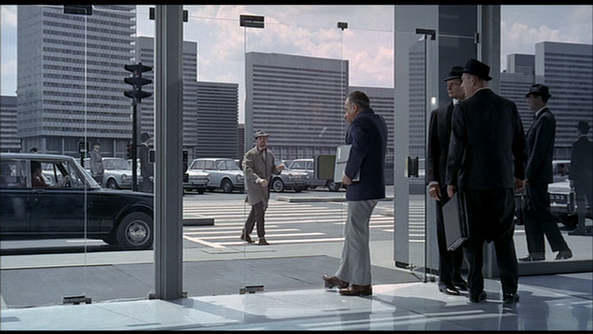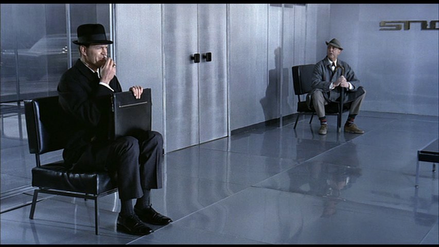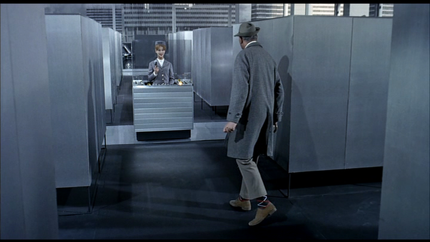 Playtime begins in a place that my loving wife, watching it for the first time, assumed was some sort of anteroom to the afterlife, a reading that I imagine director Jacques Tati would have loved. An opening credits sequence featuring clouds, which ties it to some of my other favorite movies, gives way to an establishing shot of a glass and steel skyscraper: