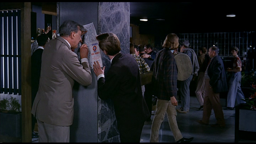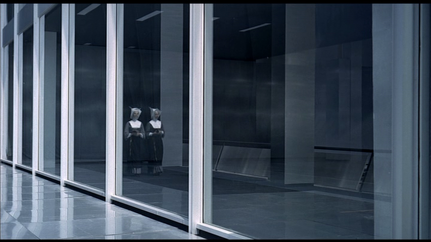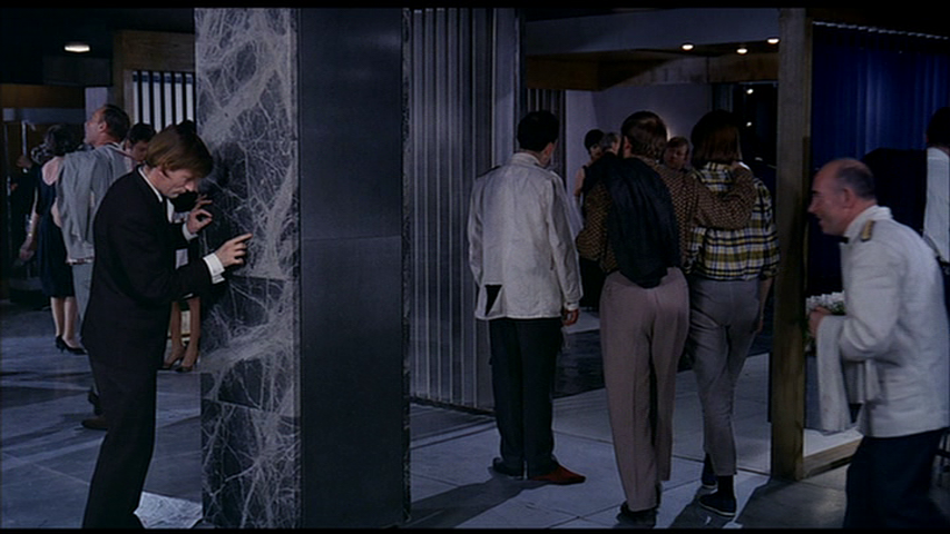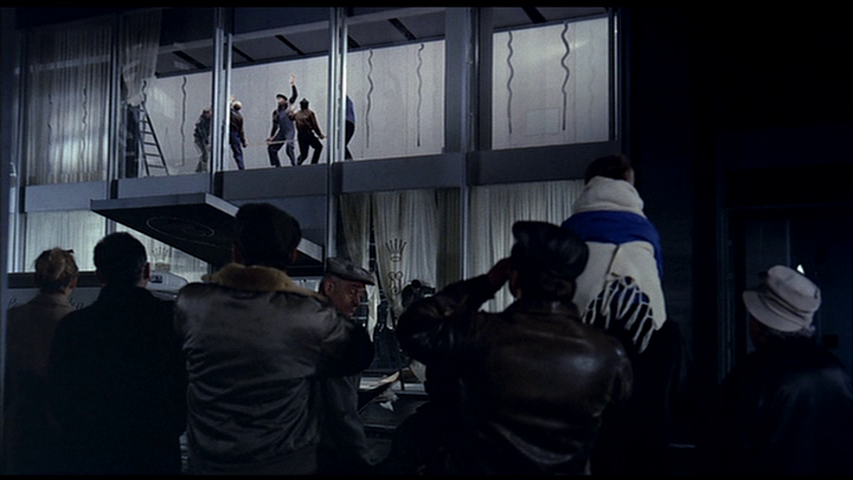 And a slippery floor that causes what Rosenbaum describes as “the first significant curve in the film that undermines all the straight lines and right angles dictated by the architecture and echoed by all the human movements”:
