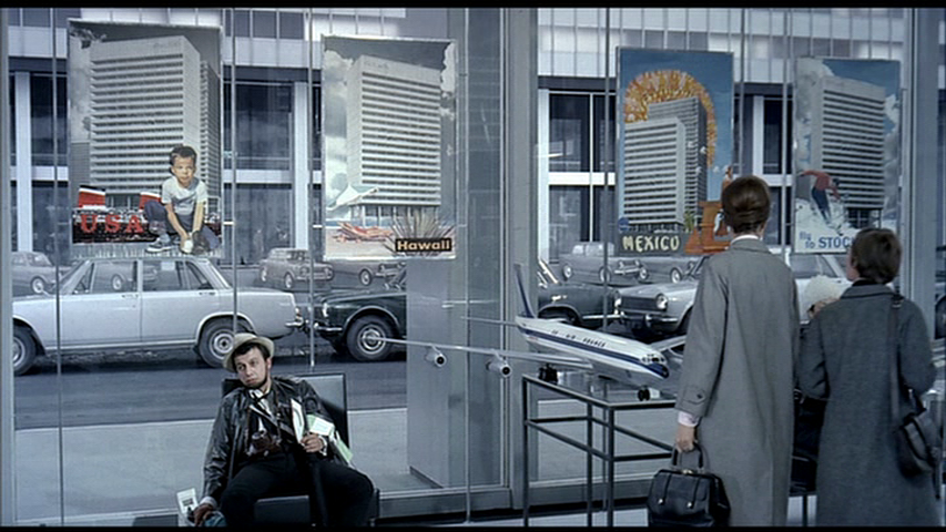 The sequence ends with Tati making his critique of the sameness of contemporary architecture more explicit via a set of travel agency posters: