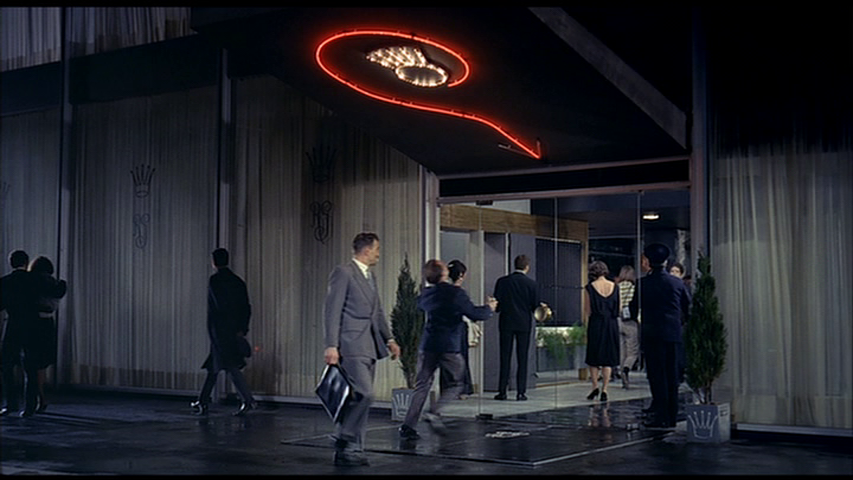 It’s also an early example of what Lisa Landrum identifies as Tati’s use of color to “symbolically to reveal narrative and allegorical meaning” in her chapter in the book Filming the City, here as a “crimson reminders of life’s more sensual pleasures.”
