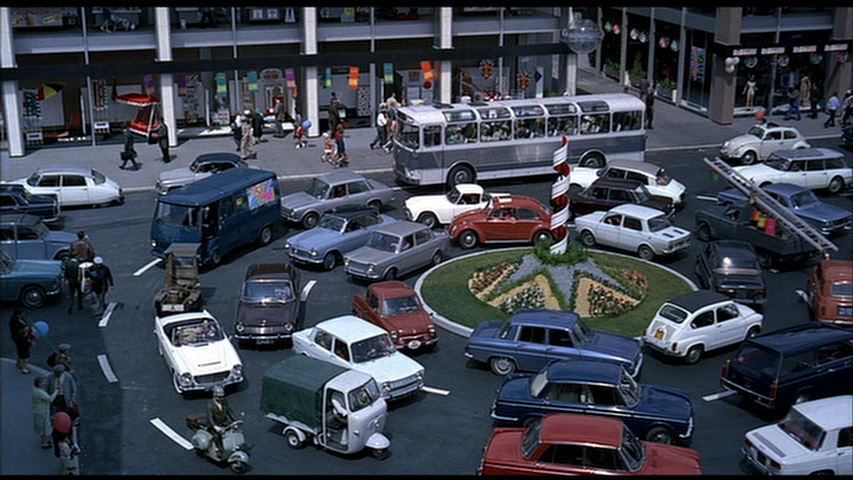 But for all the joyful anarchy of this scene, my favorite part of Playtime is definitely its ending. As Barbara and her tour group make their way back to the airport the following morning, Paris transforms into a carnival, complete with a traffic circle carousel that stops and restarts when a man puts a coin in a parking meter: