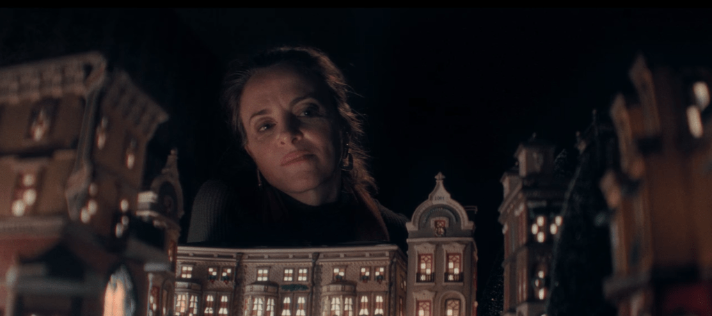To this one of her mother (Maria Dizzia) looking down on a winter “scene” like the one we put up every December: