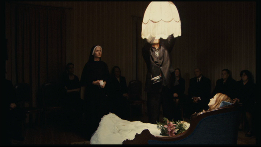 He follows it with two quick pans, though, one to Nick making a face at his wife: