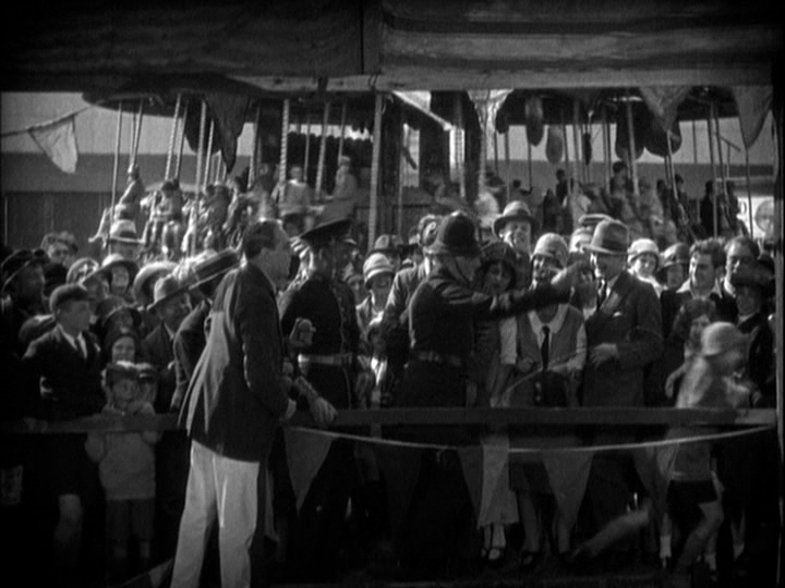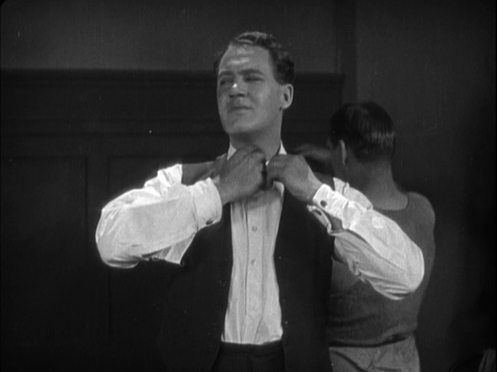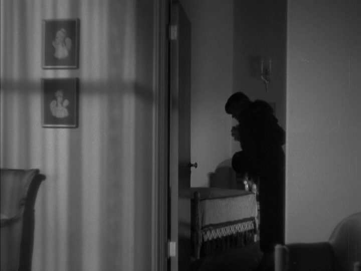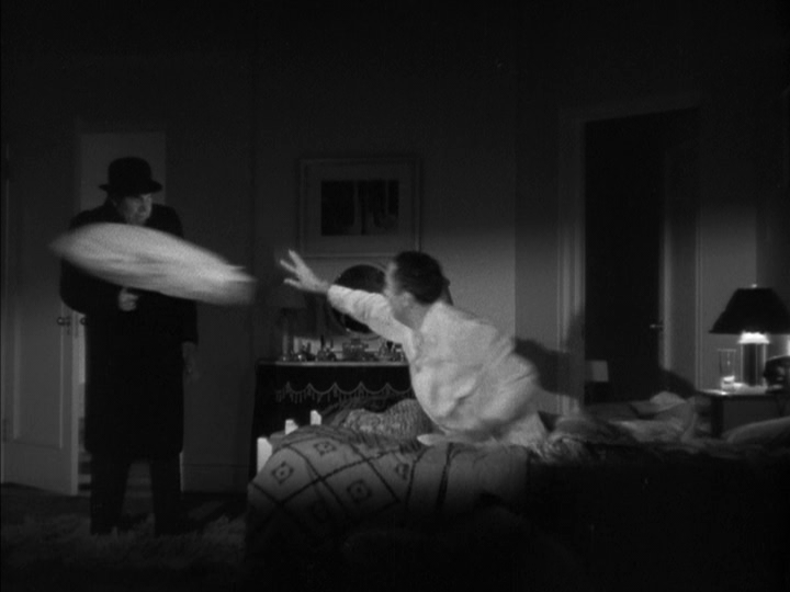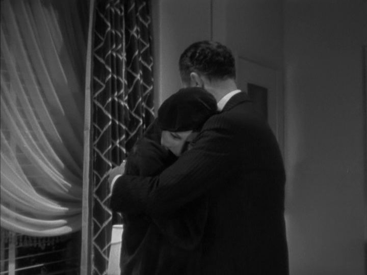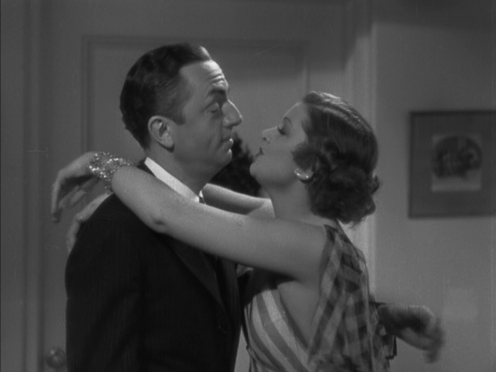 “By panning between the embrace and Nora’s reaction rather than cutting between them,” Kozlowski observes, “again we have Nick and Nora as one unit rather than being edited apart from each other, and we establish again that this married couple trusts each other completely.” That night Nick saves Nora’s life by knocking her out before the man who has broken into their apartment (Edward Brophy) can shoot her:
