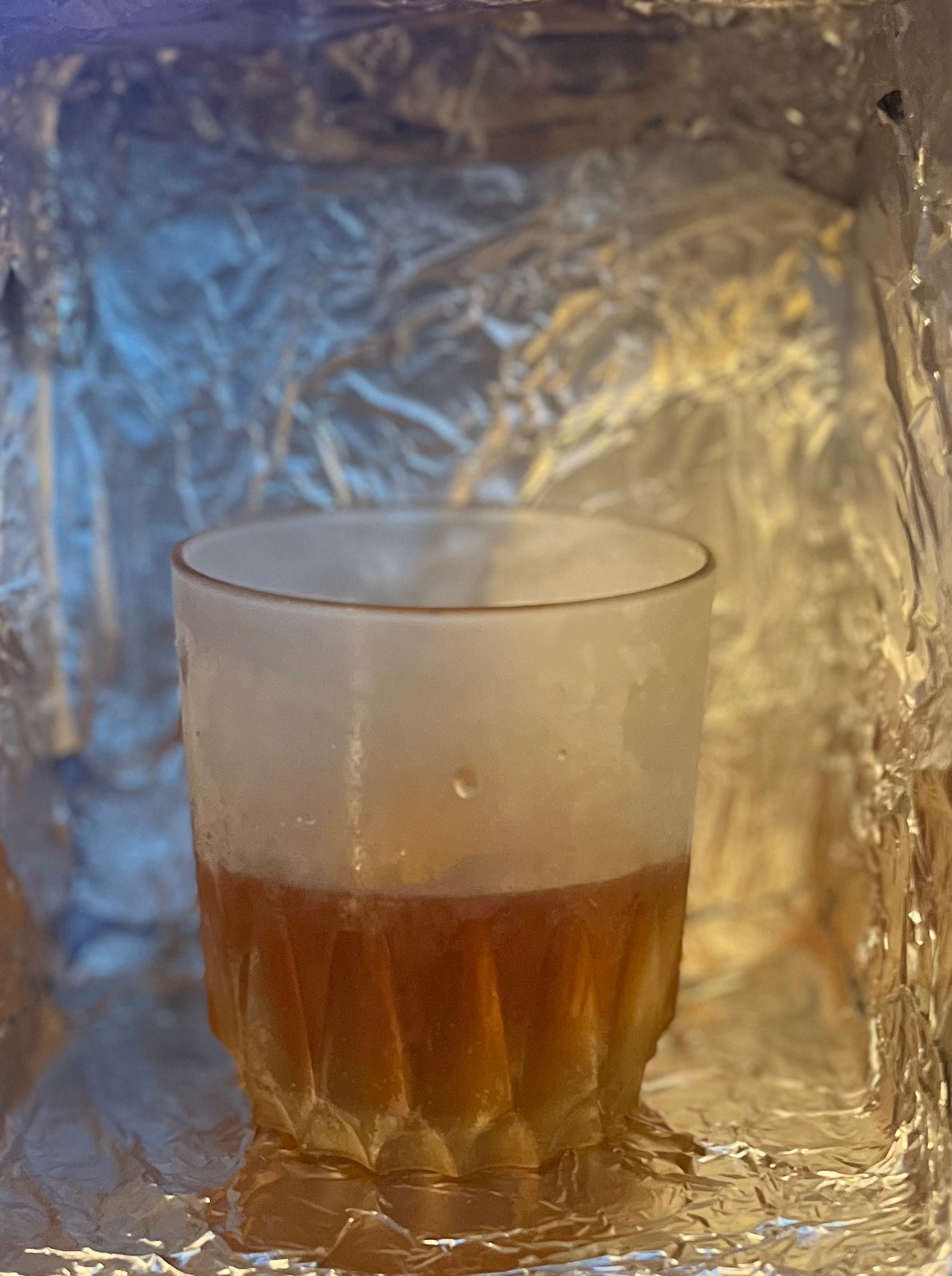 “The dry Martini you always shake to waltz time,” he concludes. Which: this *would* guarantee that the shaking is done gently, limiting aeration and dilution to acceptable levels, and I don’t think a barspoon is capable of anywhere near the same degree of bespoke sophistication, so maybe the technique is overdue for a revival! The Martini proportions in The PDT Cocktail Book are perfect as far as I’m concerned, but in a nod to the Christmas season (which is when The Thin Man takes place) we’ve been making ours with a dash of an extra ingredient and a festive garnish. Here’s how: