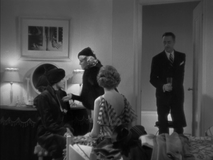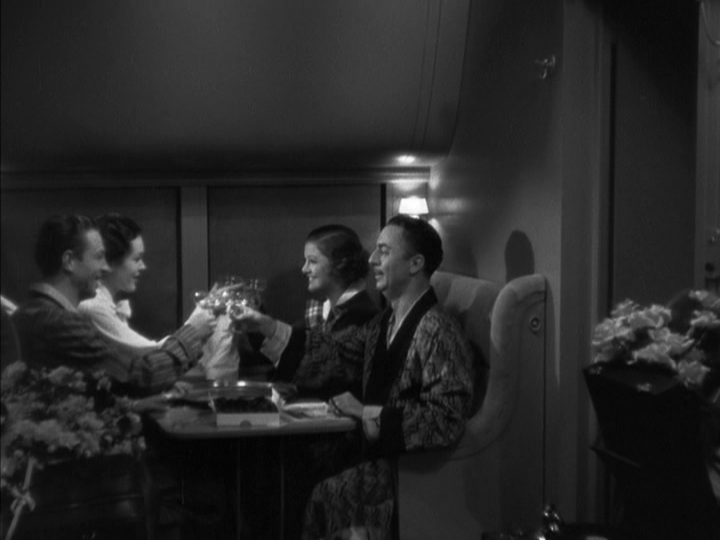 And the movie’s penultimate scene finds Nick and Nora in the sleeping car of a cross-country train toasting their success with Dorothy and her new husband Tommy (Henry Wadsworth) in an off-center composition by cinematographer James Wong Howe that makes it clear the Charles’s have overstayed their welcome by including the door: