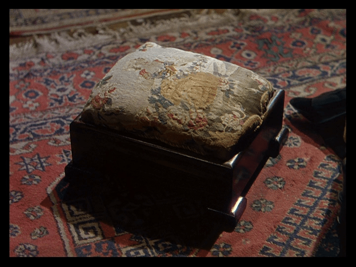 As the film progresses and her memories become as real as whatever she’s experiencing live, though, this is replaced by straight cuts, for instance from Sister Honey’s description of a jacket worn by the Old General’s heir (Sabu) as “just like my grandmother’s footstool” to this one from Sister Clodagh’s youth: