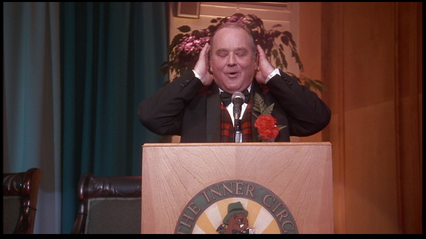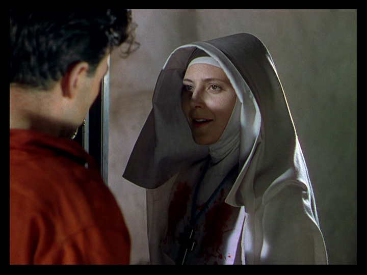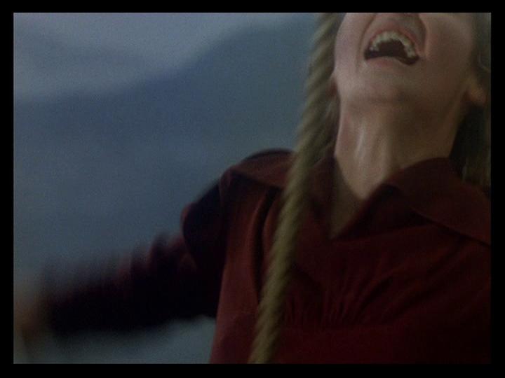 Than anything in the screenplay. But Kehr is right that this tendency is best exemplified in the incredible final sequence, where it’s “enough to see the bright, red lipstick that Sister Ruth has put on to know that the apocalypse is near.” He’s referring to the scene which follows her sudden appearance in a red dress to announce to put an exclamation point on her decision to not renew her vows (the Servants of Mary are only bound to their order for one year at a time):