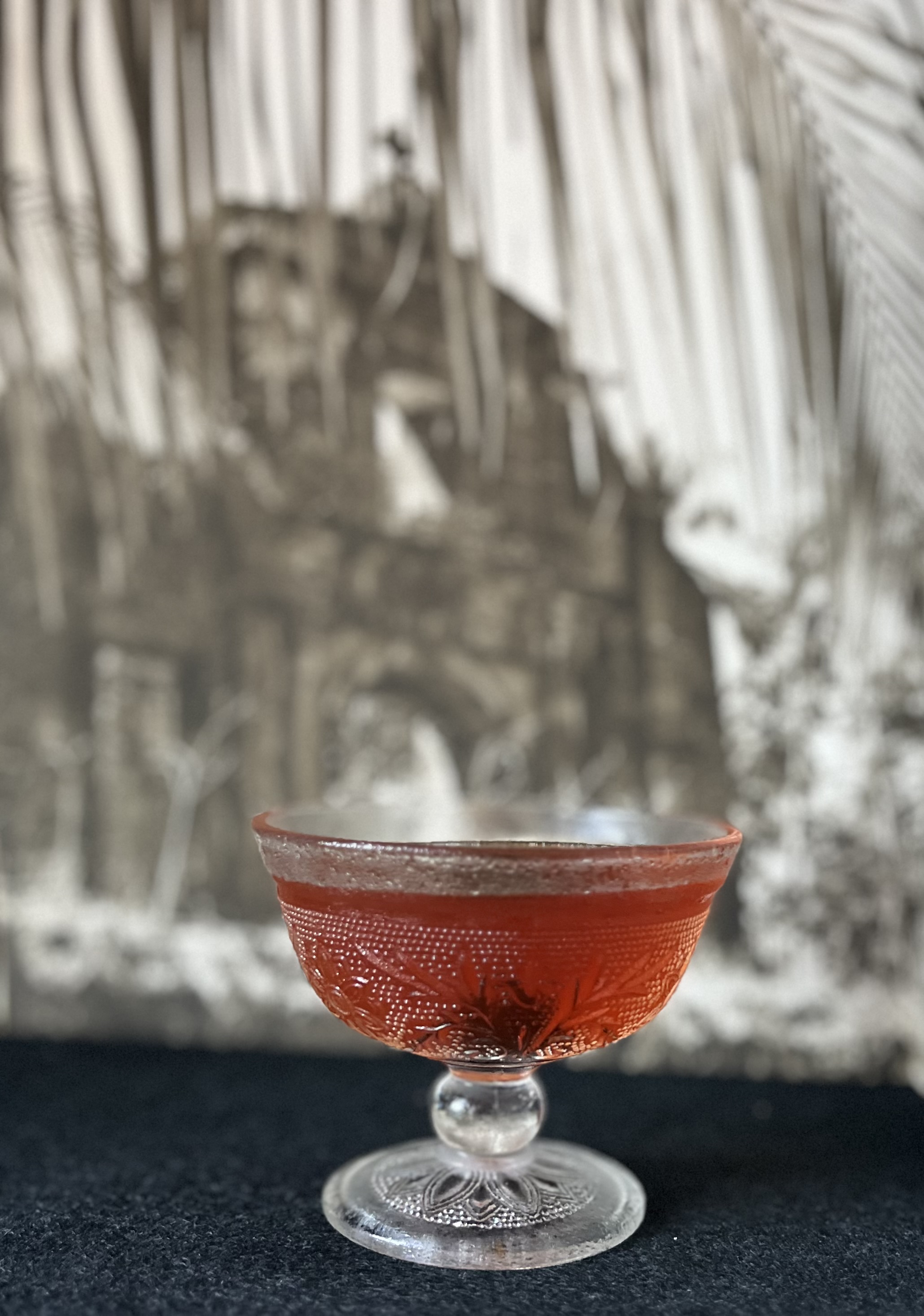 As I have mentioned previously, after I publish my last “Drink & a Movie” post in early 2026 I plan to edit all of them into a book. My chief model for this endeavor will be Vintage Spirits and Forgotten Cocktails by “Dr. Cocktail” Ted Haigh, which features a blend of images, drink lore, and practical advice in perfect proportions and which is spiral-bound for ease of use as all recipe books should be! Haigh’s version of the classic East India Cocktail has been in heavy rotation at our house since the end of raspberry season, so it seemed like a logical choice for this month’s drink. Here’s how we make it:
