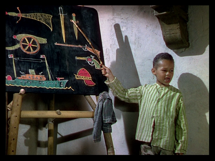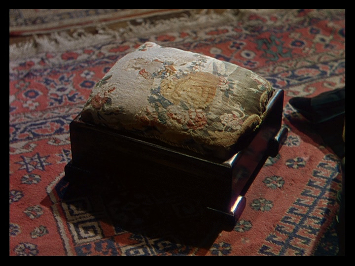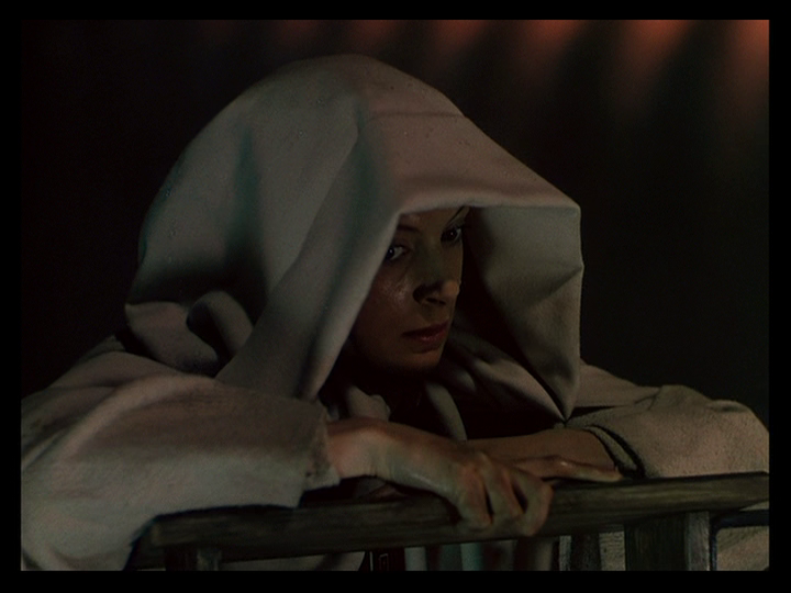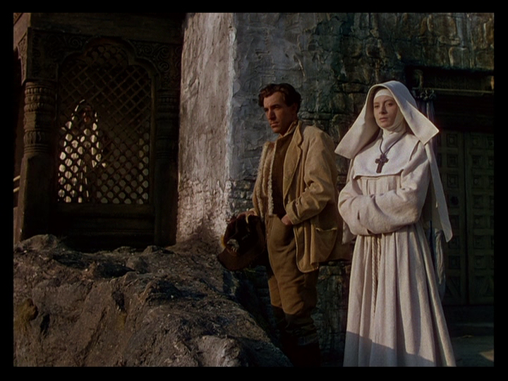 As the film progresses and her memories become as real as whatever she’s experiencing live, though, this is replaced by straight cuts, for instance from Sister Honey’s description of a jacket worn by the Old General’s heir (Sabu) as “just like my grandmother’s footstool” to this one from Sister Clodagh’s youth: