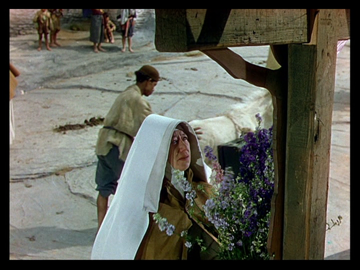 So, yes, the last image is of a British retreat, but it’s a POV shot from the perspective of an Englishman who will remain behind and who promises to take care of Sister Ruth’s grave. It therefore doesn’t play as a farewell to Empire for me so much as an elegy for a certain idea of Britishness, one caught impossibly between the two ways of living in a colonized land previously articulated by Sister Philippa: “either you must live like Mr. Dean, or . . . or like the holy man. Either ignore it or give yourself up to it.” Sister Clodagh intuits that there must be a third way, but cannot articulate what it is, which is why she and the surviving sisters must leave. It’s also why, for all of Black Narcissus‘s gorgeous and inspired cinematography, my favorite moment of all might be the simple scene in which Sister Philippa places the flowers she planted instead of vegetables like she was supposed to on Sister Ruth’s grave: